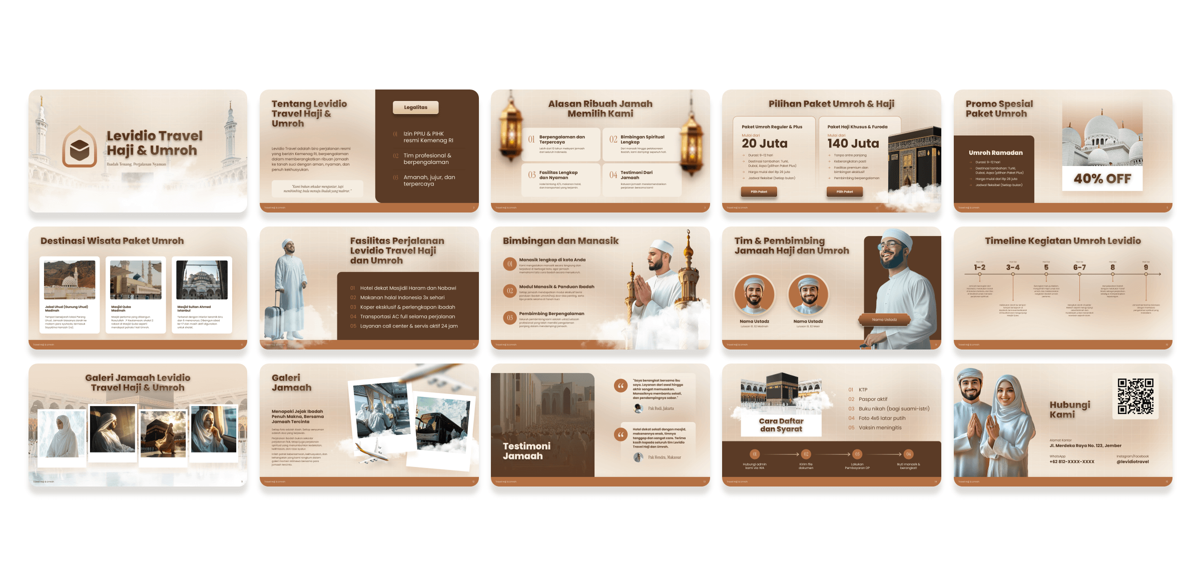 Kami bantu biro travel Anda membangun kepercayaan lewat tampilan desain yang profesional, syar’i, dan konsisten.