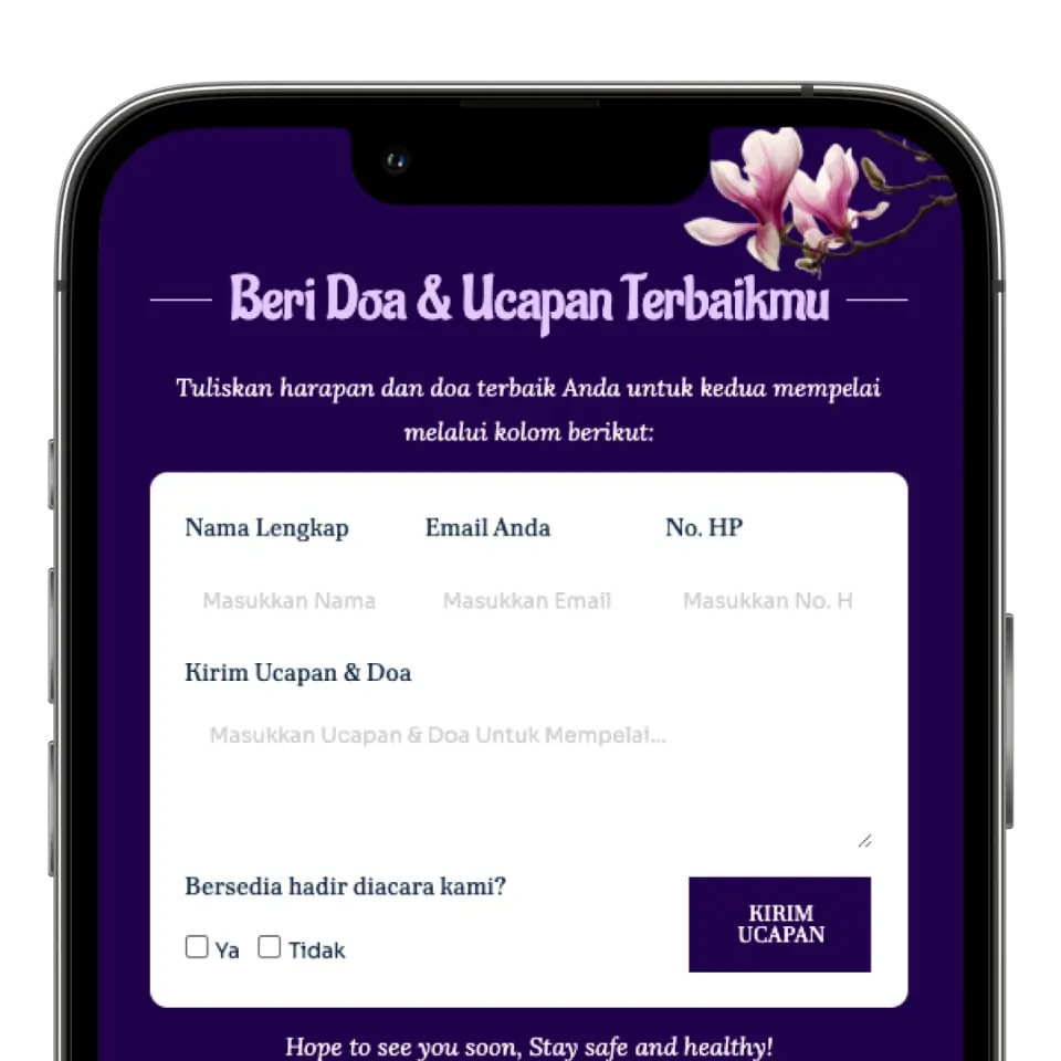 Undangan terlihat cantik di semua perangkat, baik di HP maupun desktop.