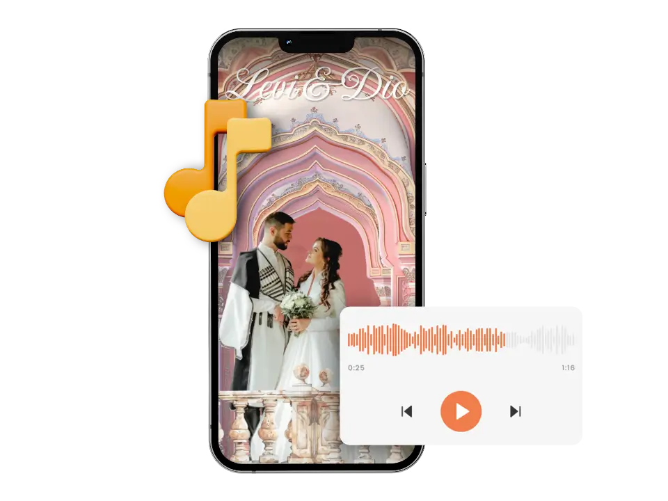 Tersedia dalam berbagai genre dan suasana, cocok untuk memperkuat kesan elegan, romantis, atau syahdu di undangan Anda.