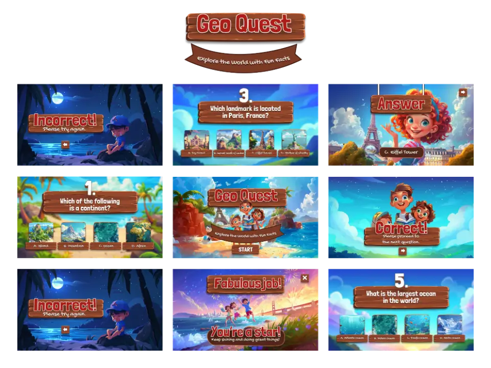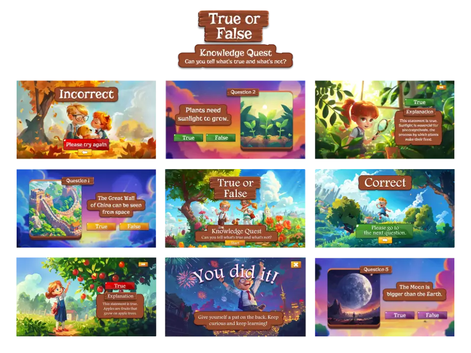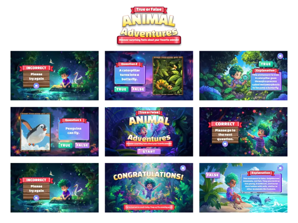 Semua Game, Kuis, dan Video Sudah Termasuk Pengisi Suara dan Animasi, Mudah Disesuaikan!
