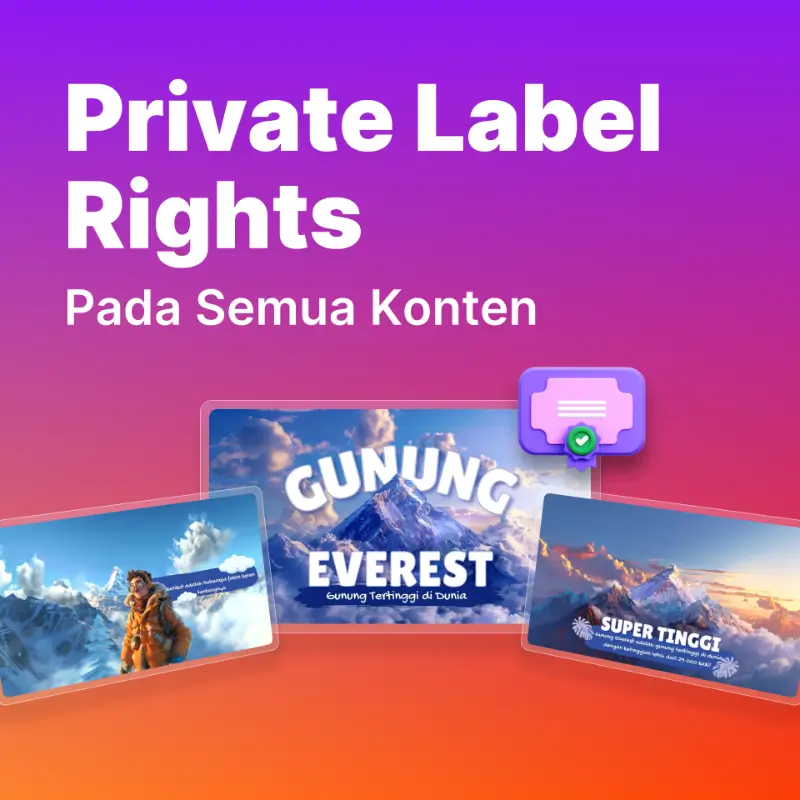 Dapatkan Kepemilikan dengan Hak Private Label untuk Setiap Game Edukasi Interaktif dan Template Video Sains, dan Aset grafisnya. Plus, Akses Alat Pemasaran Komprehensif untuk membantu anda Re-branding, Penjualan Kembali, dan Peluncuran Bisnis Produk Digital Anda Sendiri di Niche Populer – Simpan 100% Keuntungan Anda.