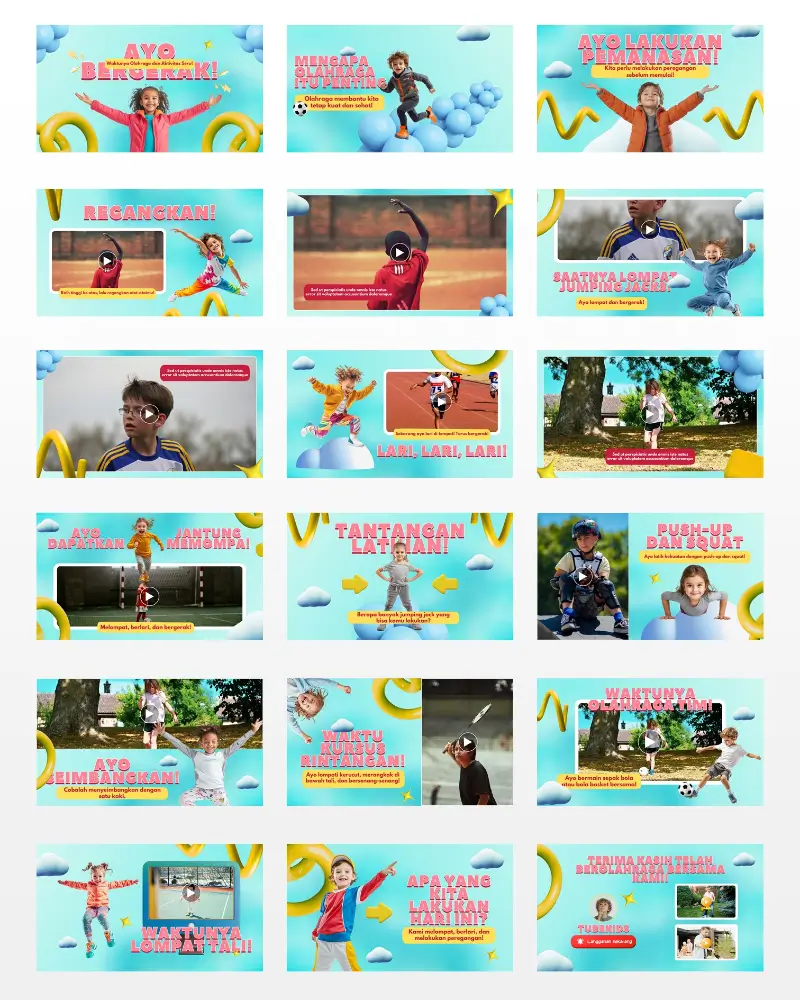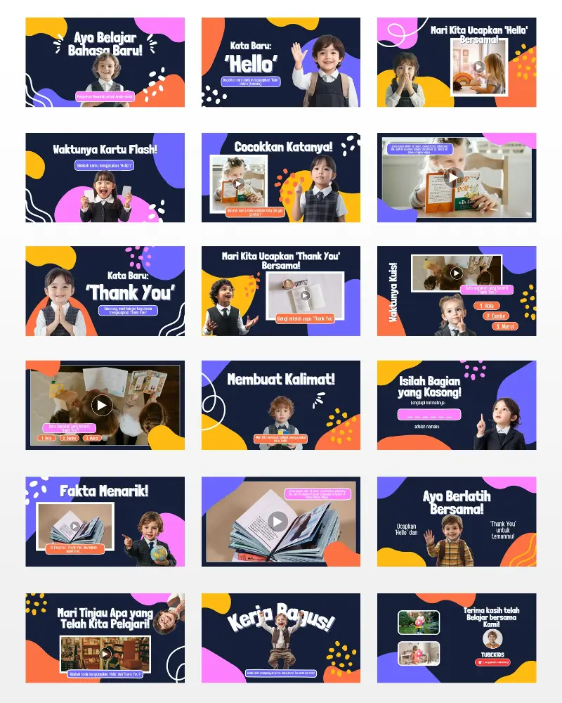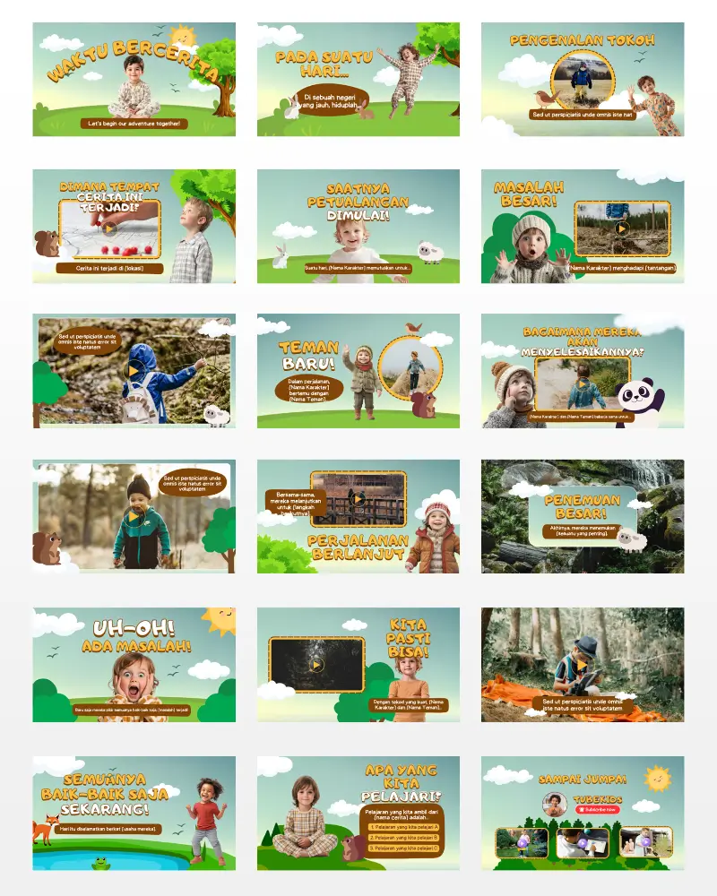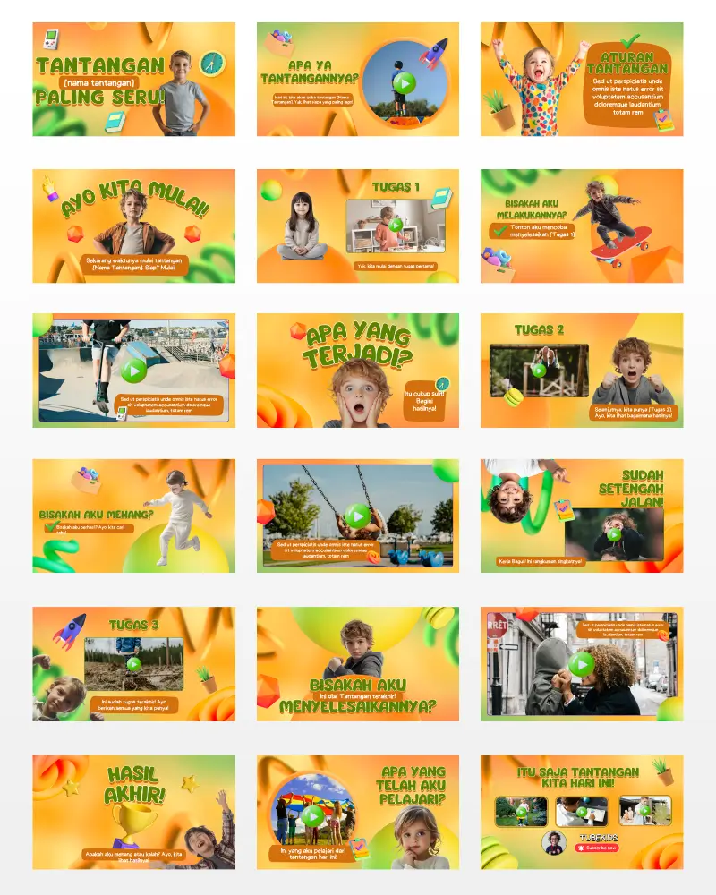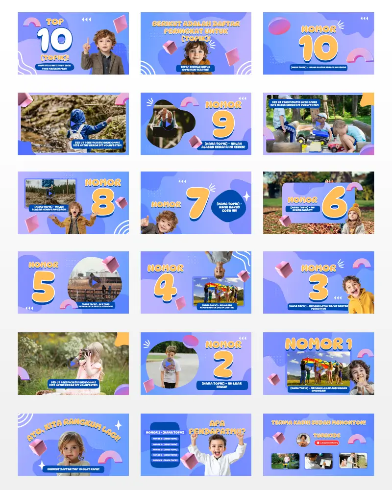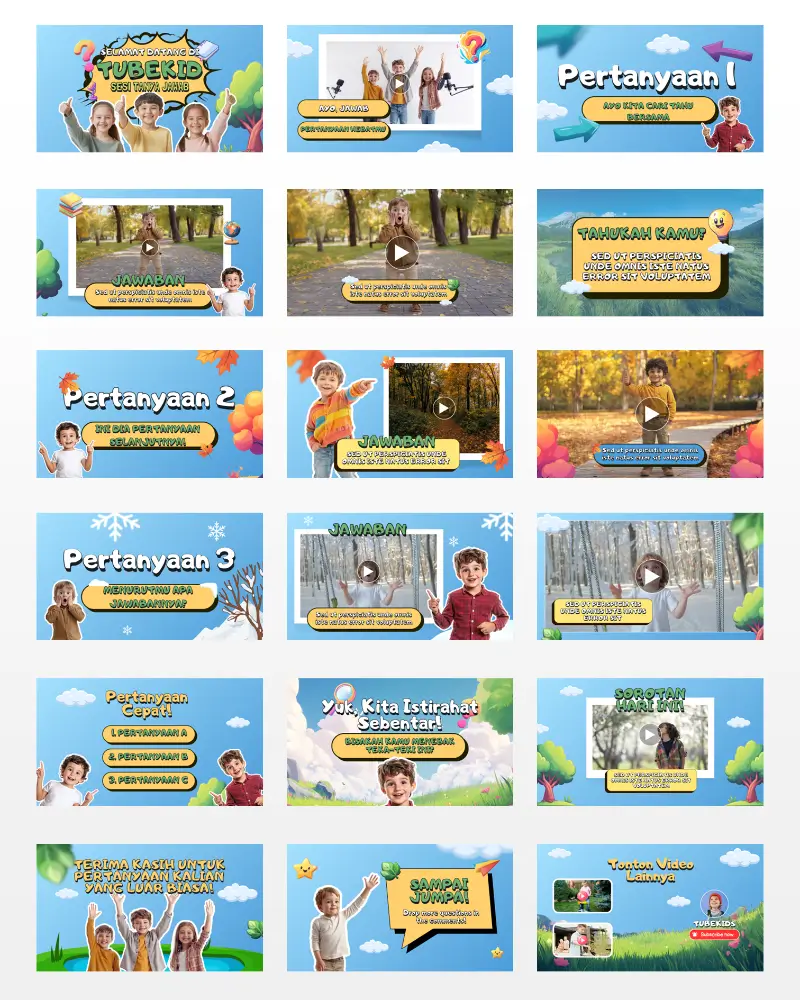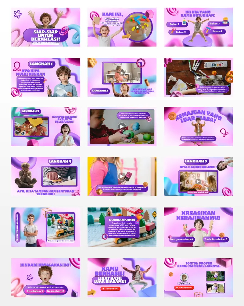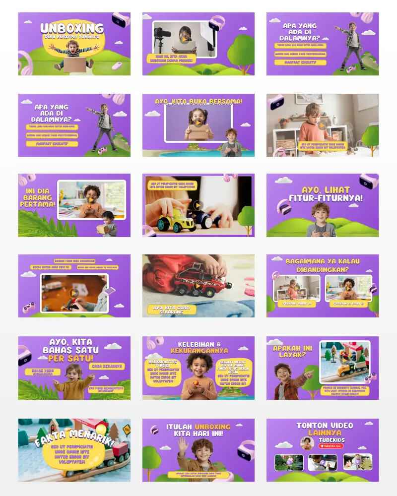 Koleksi template video berkualitas , siap diedit, dan didesain khusus untuk konten anak di YouTube. Praktis, fun, dan langsung siap tayang!