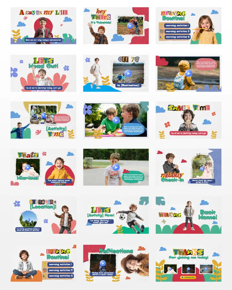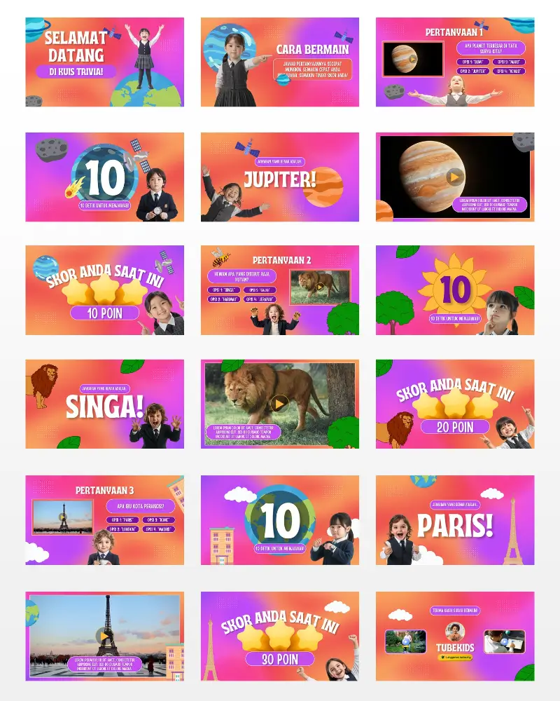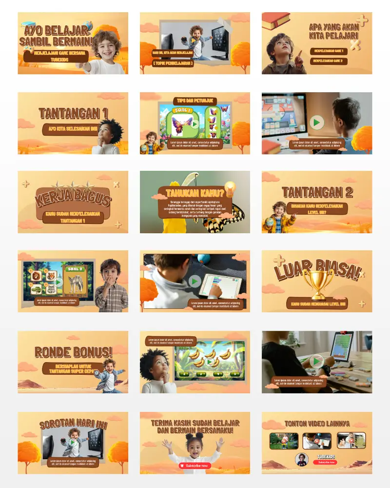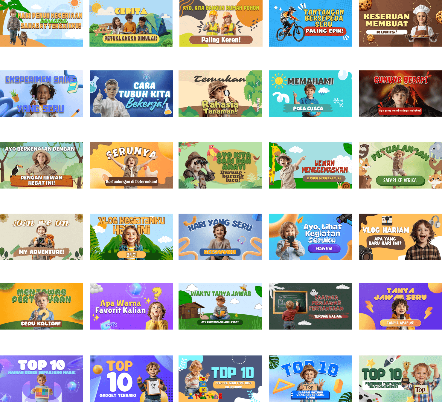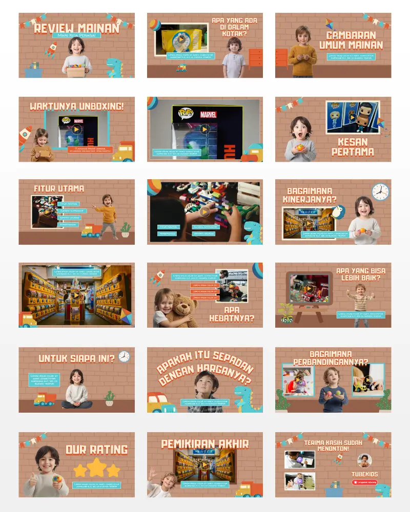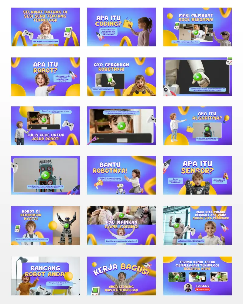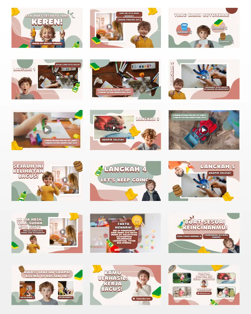 Koleksi template video berkualitas , siap diedit, dan didesain khusus untuk konten anak di YouTube. Praktis, fun, dan langsung siap tayang!