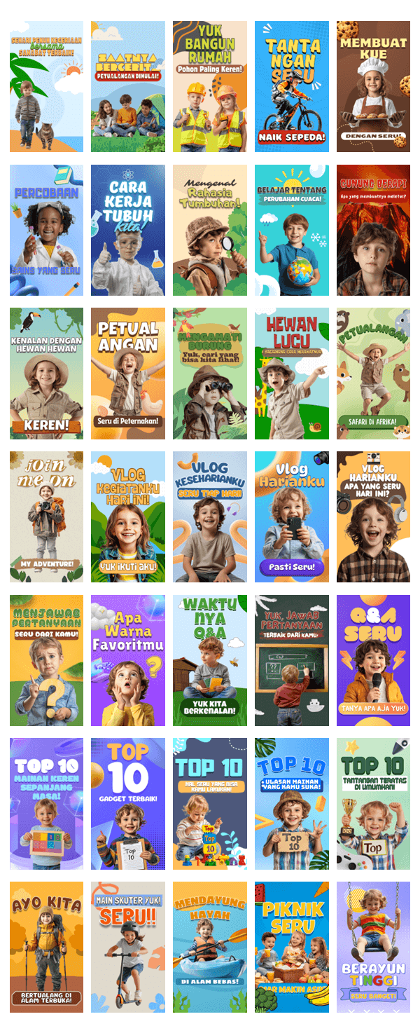 Template video siap pakai berkualitas untuk membuat konten anak-anak yang seru dan menarik dalam hitungan menit.